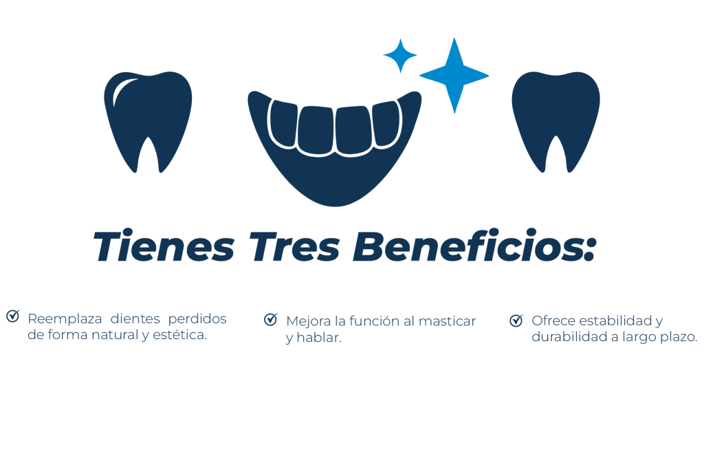 El implante se fusiona con el hueso mandibular, proporcionando un soporte estable para los dientes artificiales. Las prótesis y los puentes colocados sobre los implantes no se deslizan ni se corren en la boca, lo cual es una ventaja especialmente importante para la masticación y el habla.